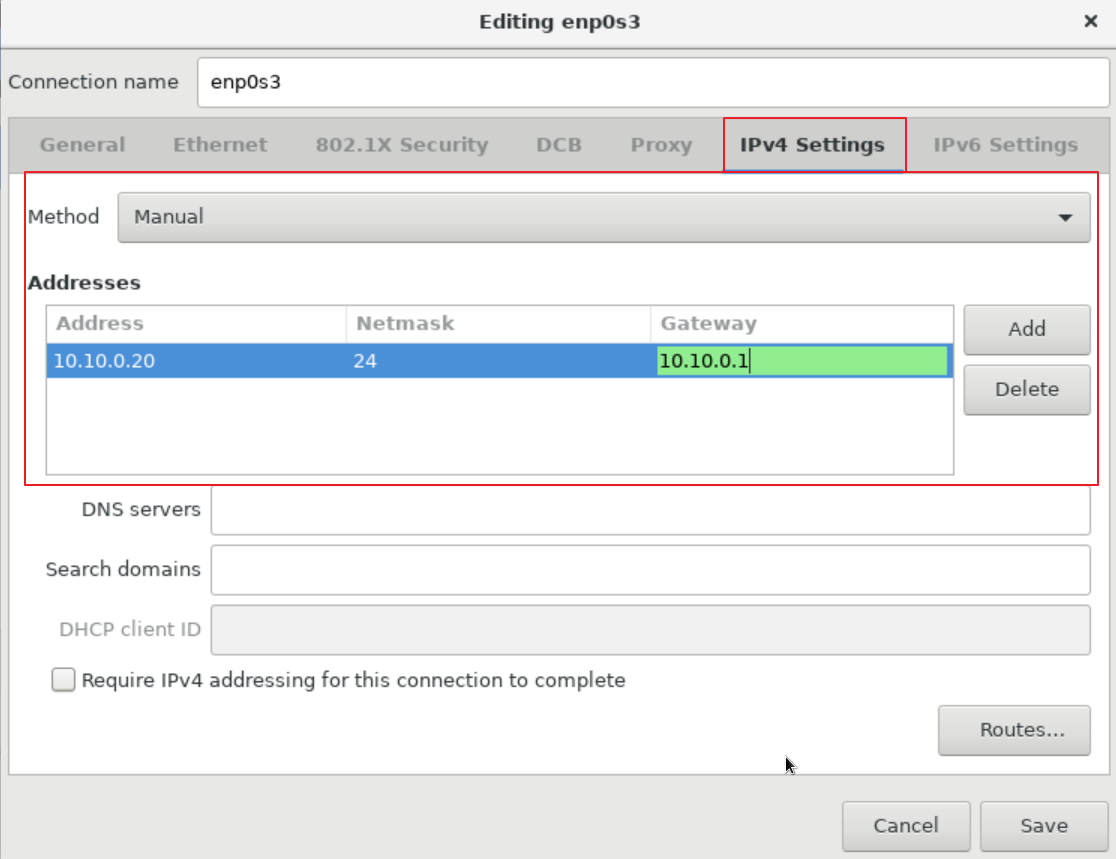 현재 Virtualbox 네트워크가 NAT 설정이고 해당 IP와 Gateway를 Static으로 지정하고 싶다면 IP/Gateway 확인한 후 적용해야한다.