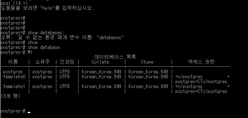 설치 후 psql 실행