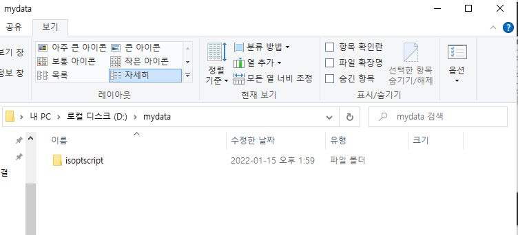 default: /opt/scripts => D:/mydata