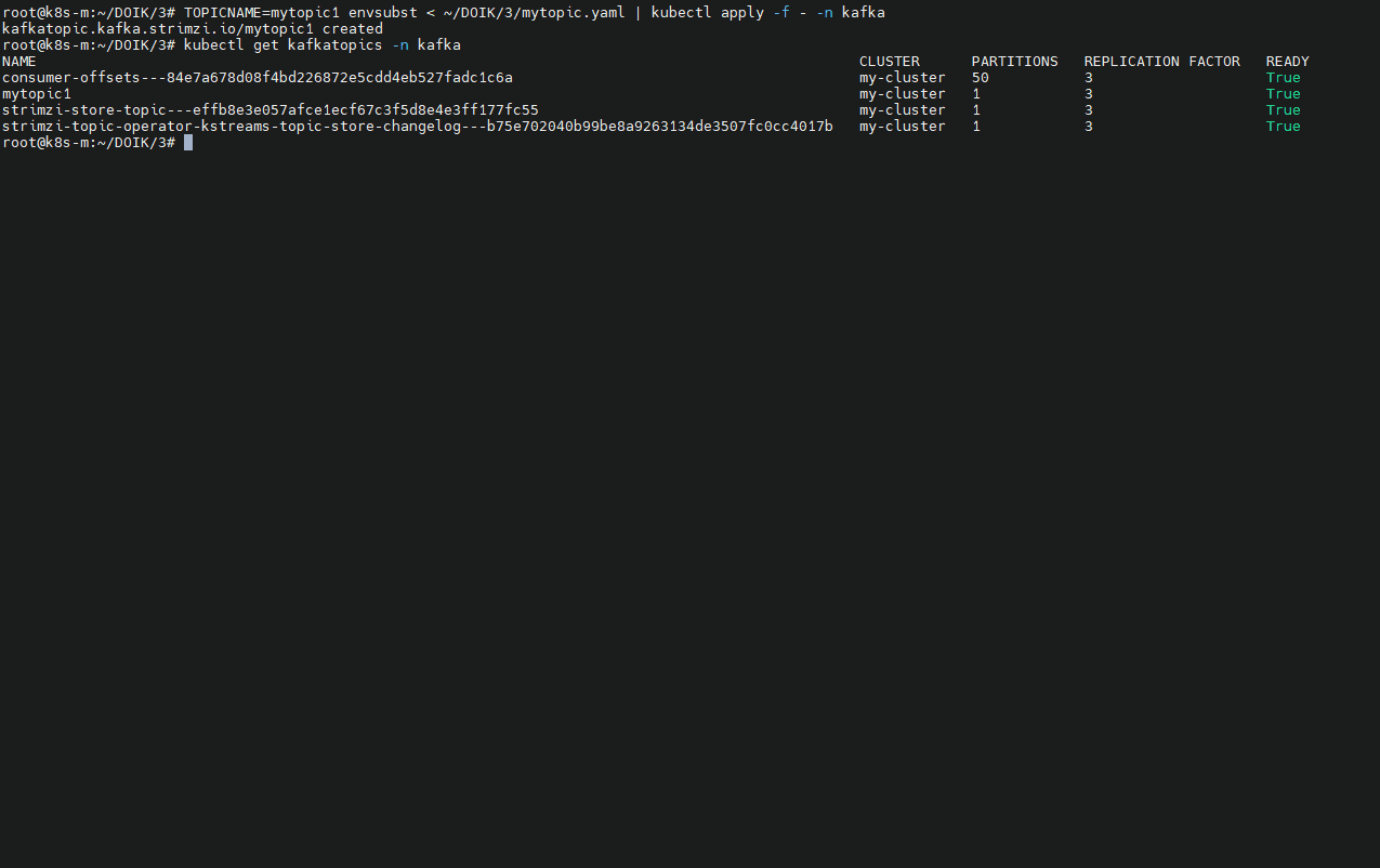 TOPICNAME=mytopic1 envsubst < ~/DOIK/3/mytopic.yaml | kubectl apply -f - -n kafka