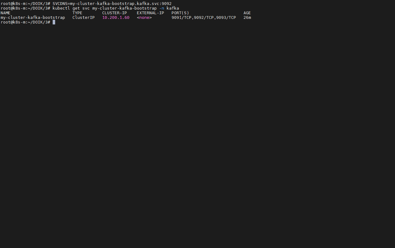 SVCDNS=my-cluster-kafka-bootstrap.kafka.svc:9092