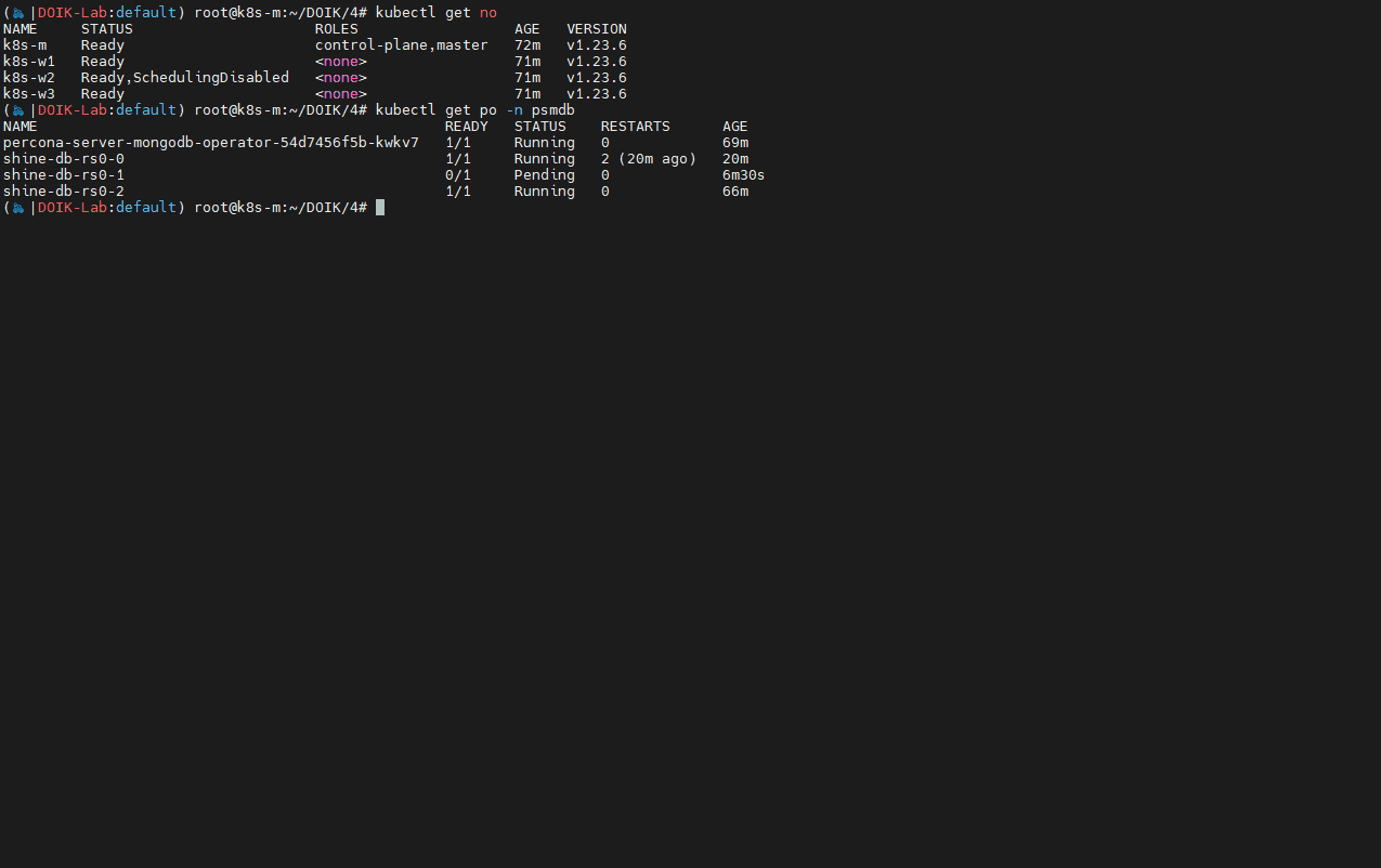 - psmdb 네임스페이스 내에 replica 수가 보장되게끔 설정되어 있음