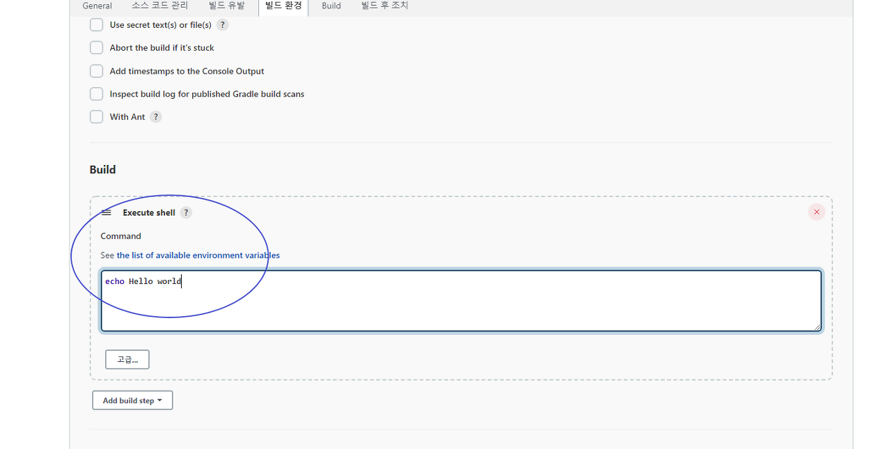 - 민감한 데이터는 Credential에서 저장하고 사용한다. → Build Environment에서 지정