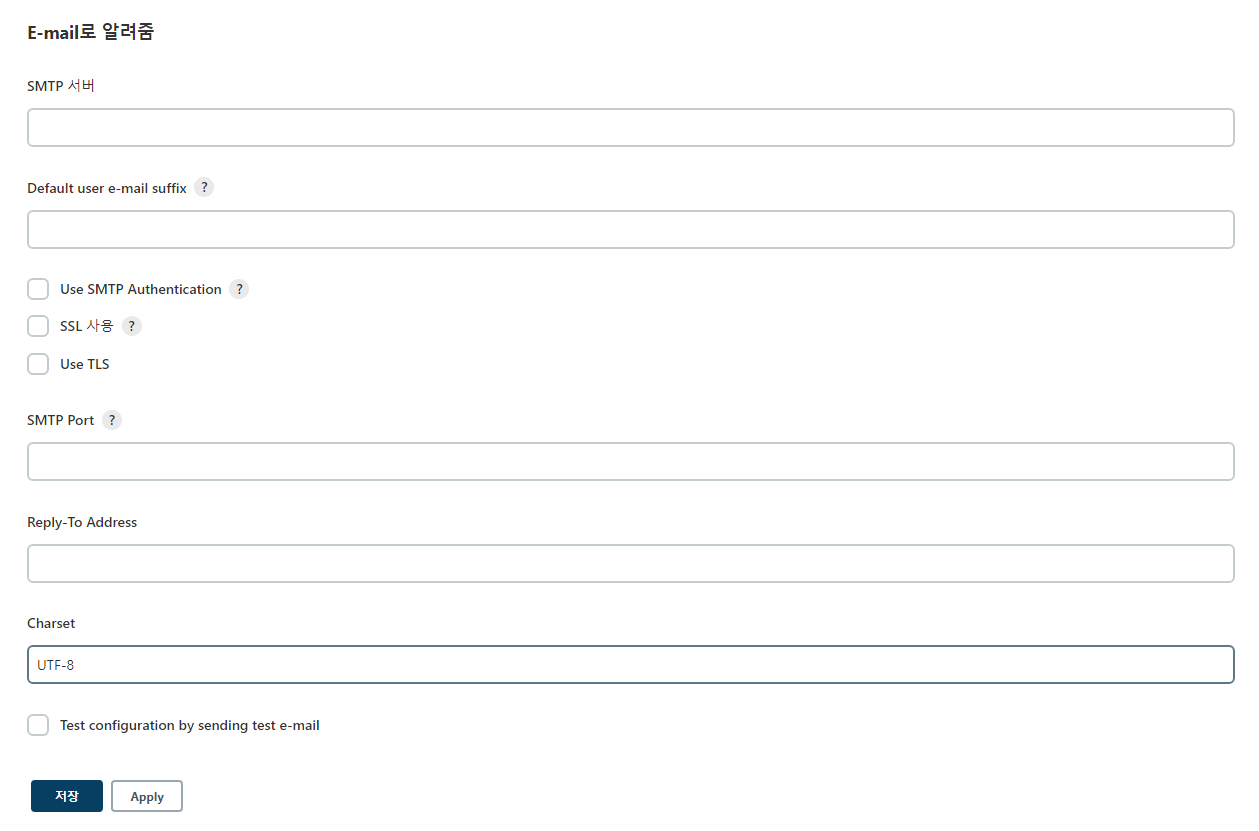 - SMTP 서버 도메인 , 인증 Username/Password 입력