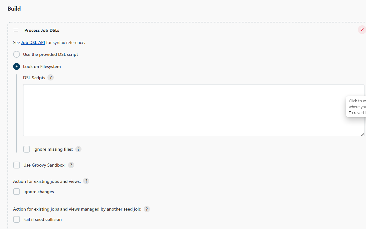 job('job_dsl_example2') { description('This is my awesome job') parameters { stringParam('Planet', defaultValue = 'world', description = 'this is the world') booleanParam('FLAG', true) choiceParam('OPTION', ['option 1 (default)', 'option 2', 'option 3']) } scm { git('<https://github.com/jenkins-docs/simple-java-maven-app>', 'master') } triggers { cron('H 5 * * 7') } steps { shell(""" echo 'hello world' echo 'Running' """) publishers { mailer('me@example.com', true, true) }